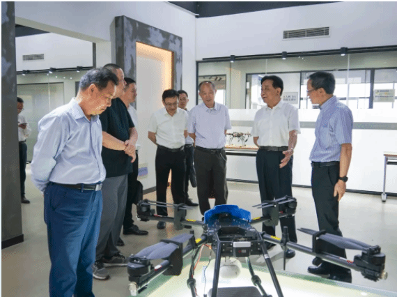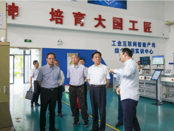 刘冬生一行参观学校无人机协同创新中心、工业互联网智能产线综合实训中心、时尚设计学院展厅、数字化教学空间,详细了解相关专业的人才培养、技术创新、社会服务等情况。